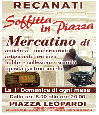 "Soffitta in piazza" Mercatino dell'antiquariato Domenica 5 Settembre a Recanati
